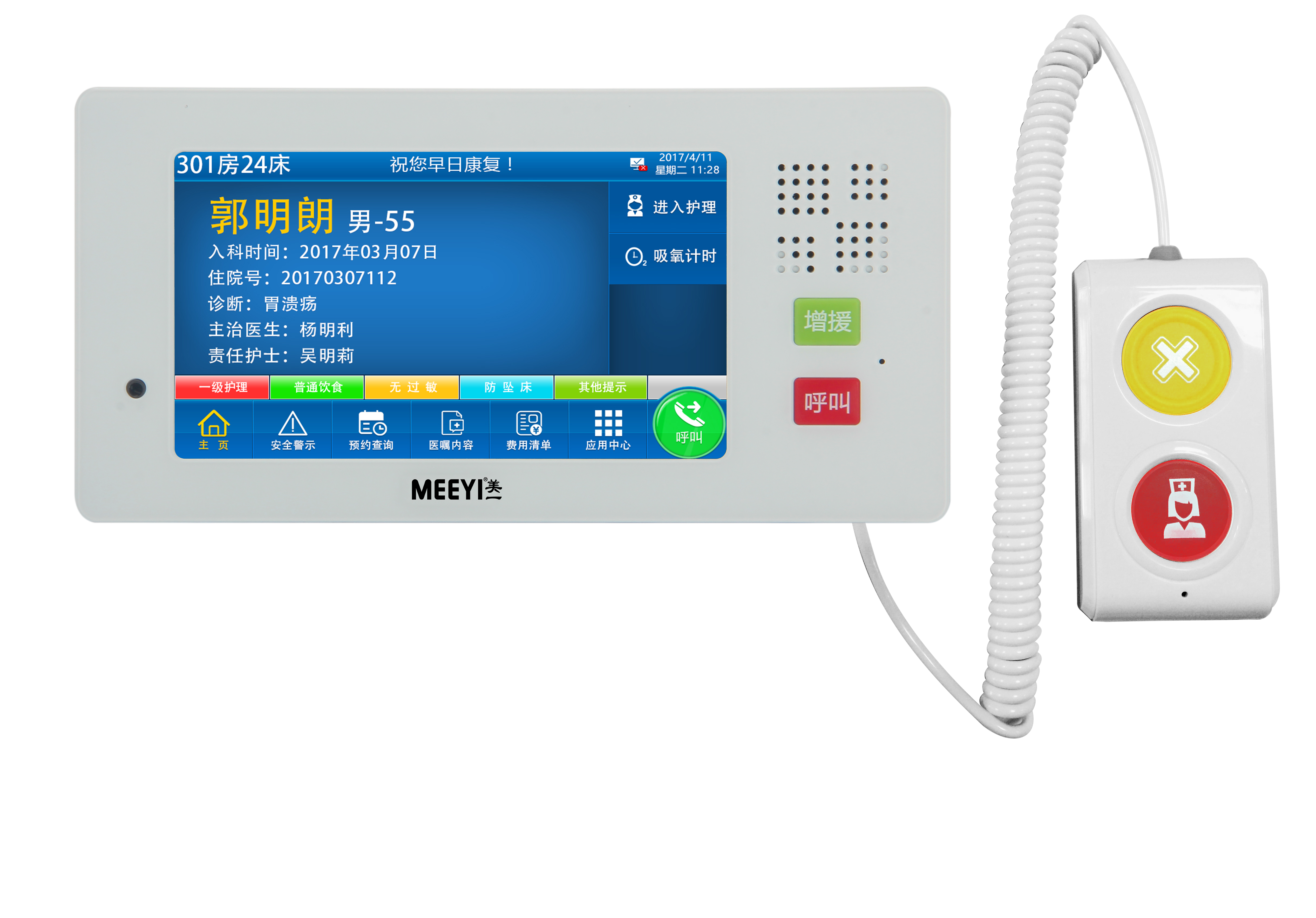 4. 带呼叫手柄,可呼叫医护主机并进行音频通话;